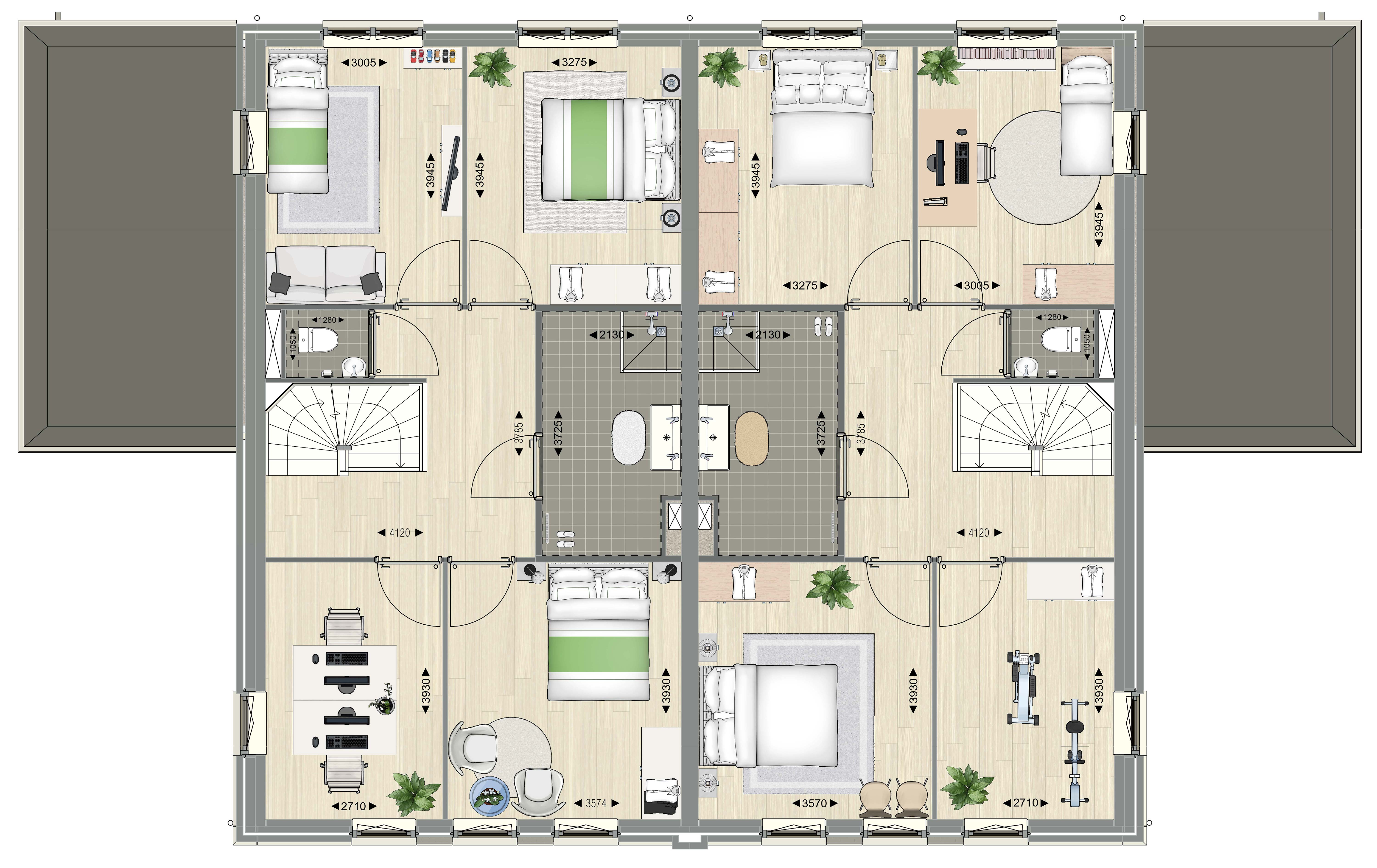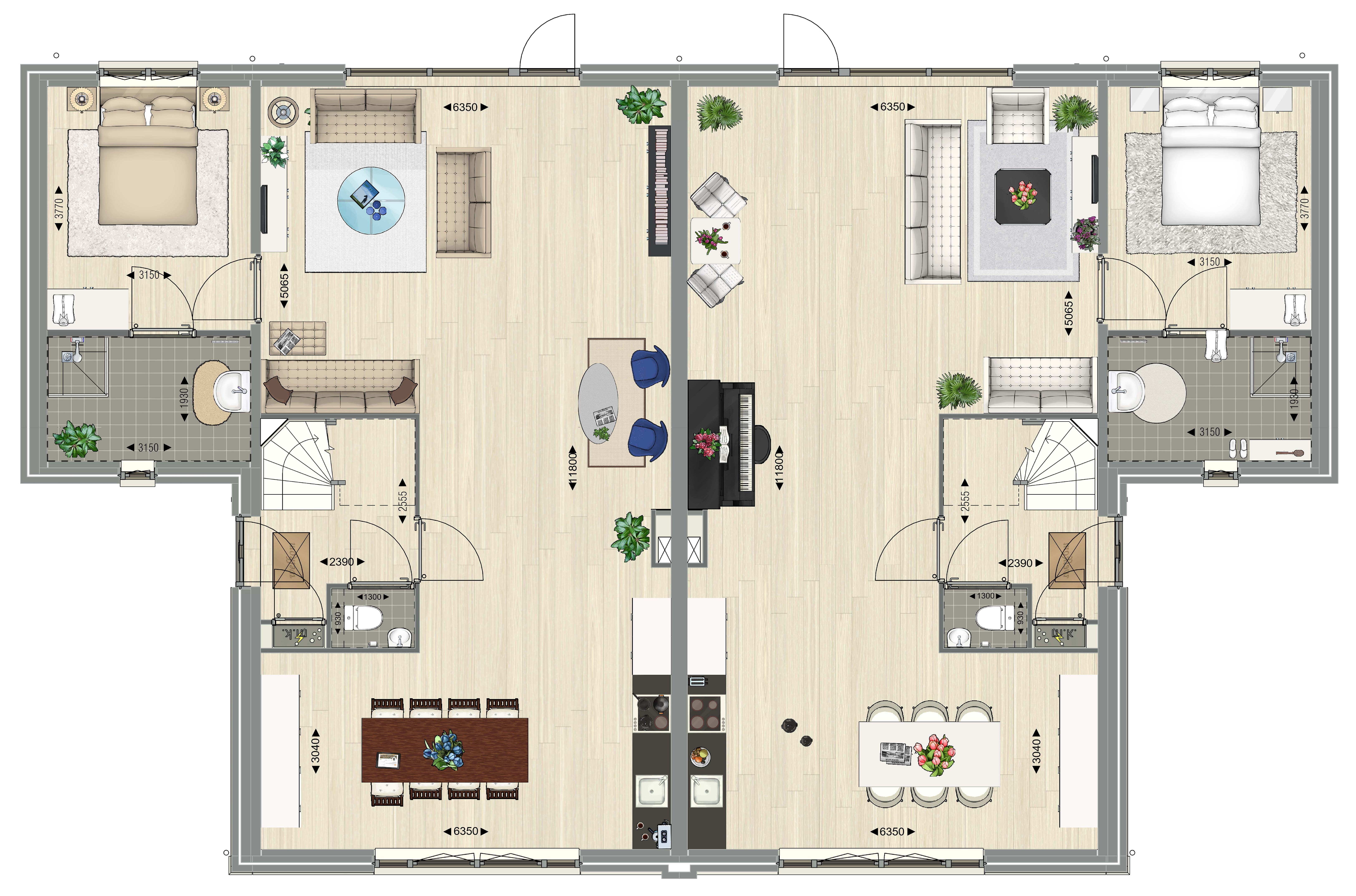 Wilt u de vrijheid van wonen in een villa, maar wel het comfort van meer gelijkvloers kunnen wonen, dan is één van deze vier geschakelde comfortvilla’s wellicht iets voor u!